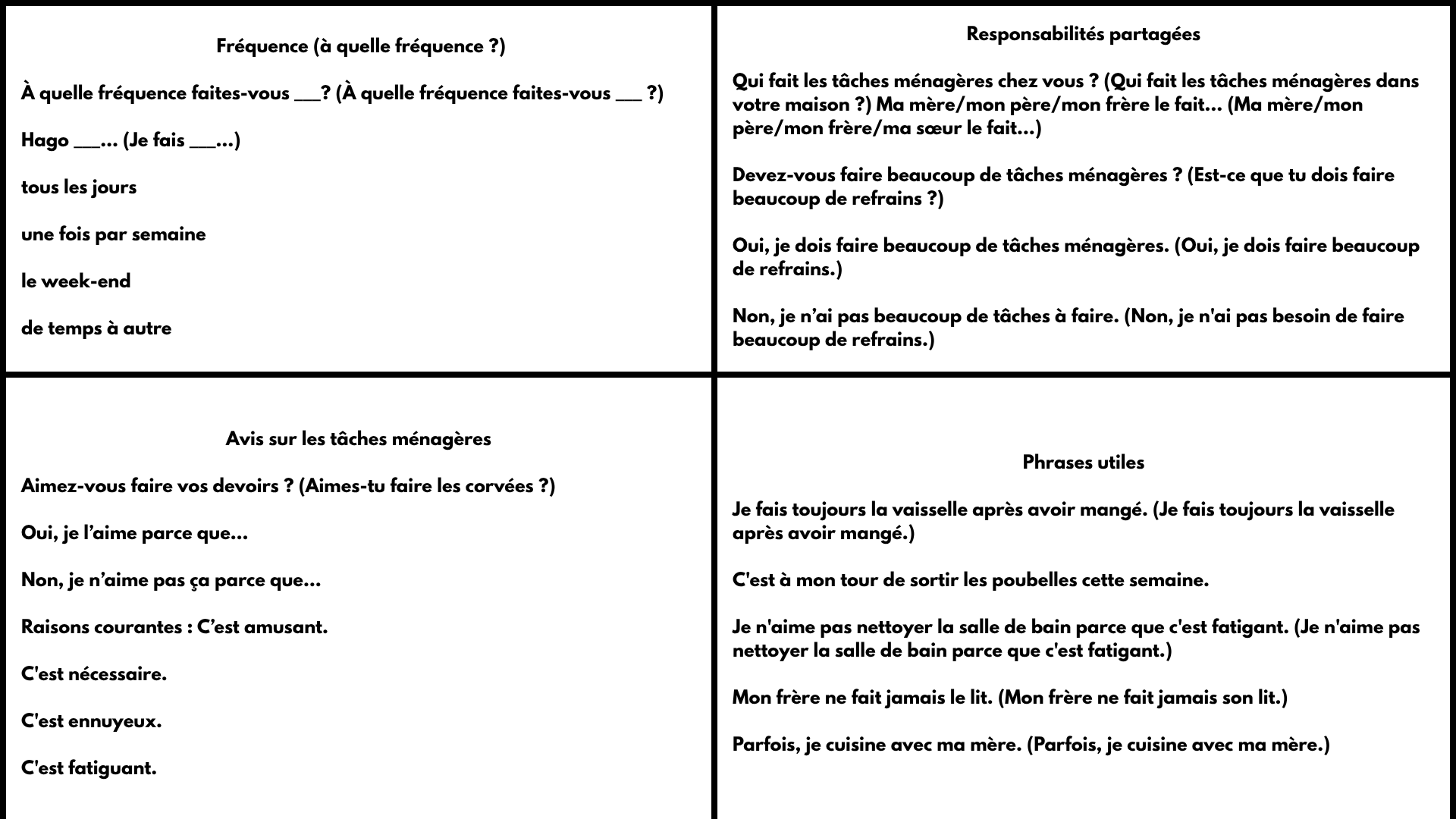 Talking about household chores is a practical, everyday topic that helps French learners build useful vocabulary and practice high-frequency structures. The French Chat Mat: Chores gives students the language support they need to talk about responsibilities at home, describe routines, and ask or answer questions about who does what.