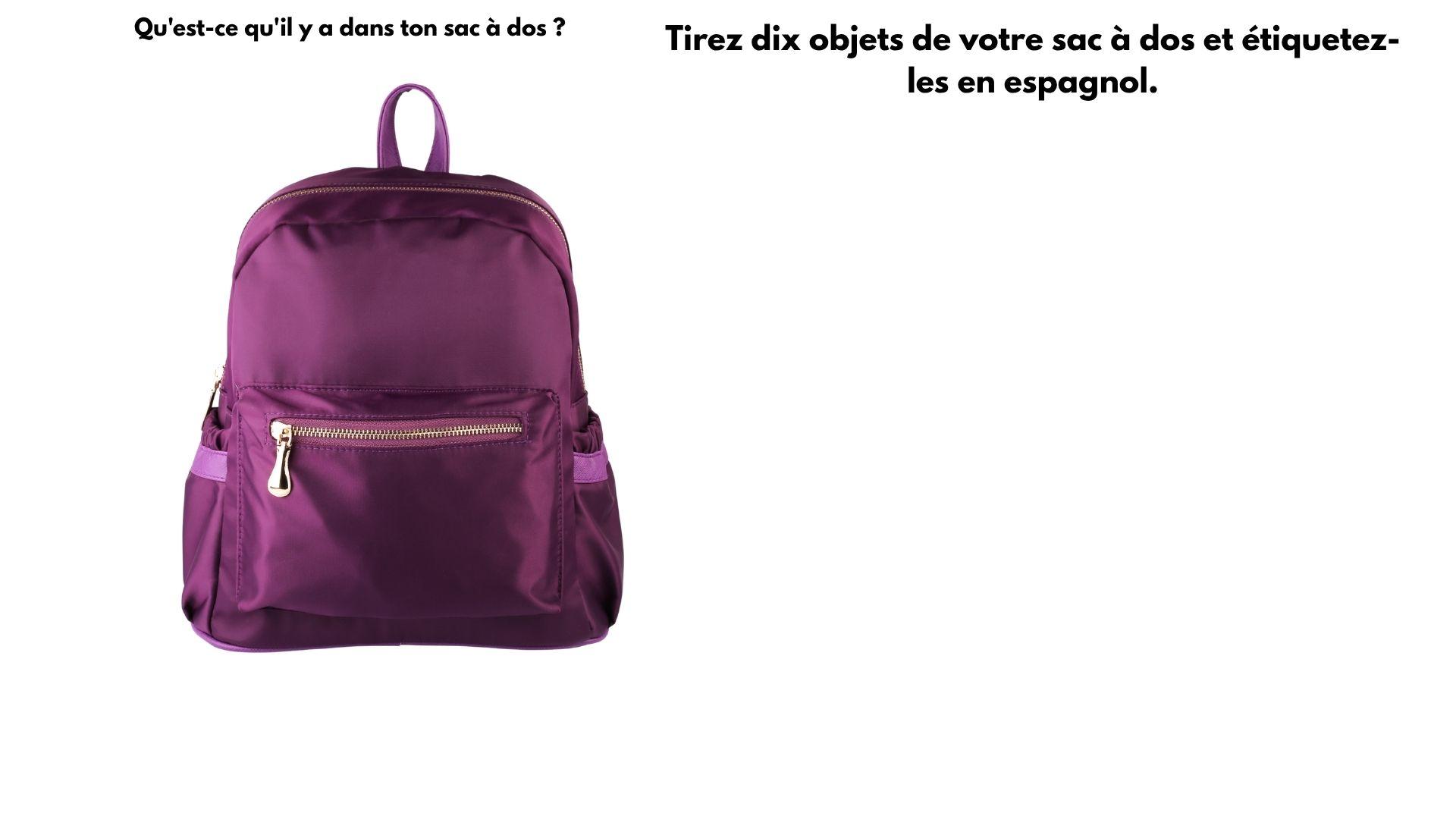 Clear images of school items help novices make meaning quickly and stay in the target language.