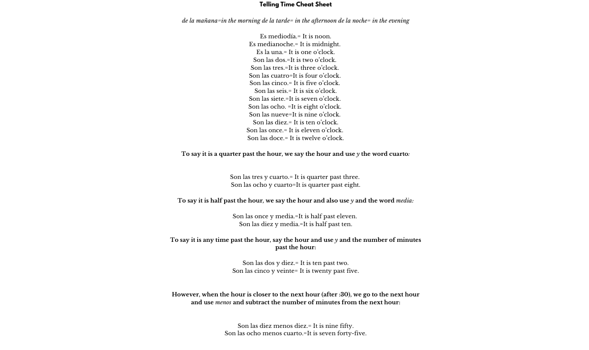 Warm-up: Review telling time in Spanish