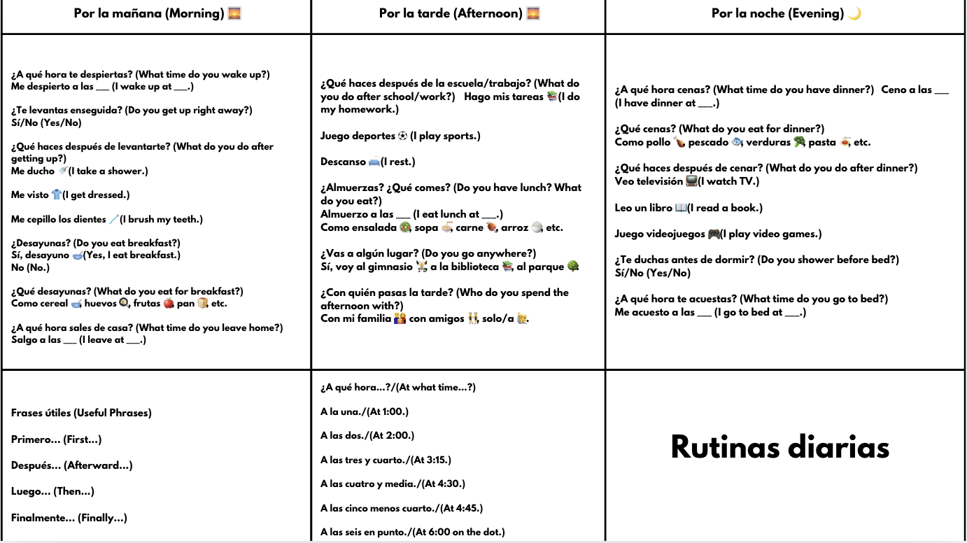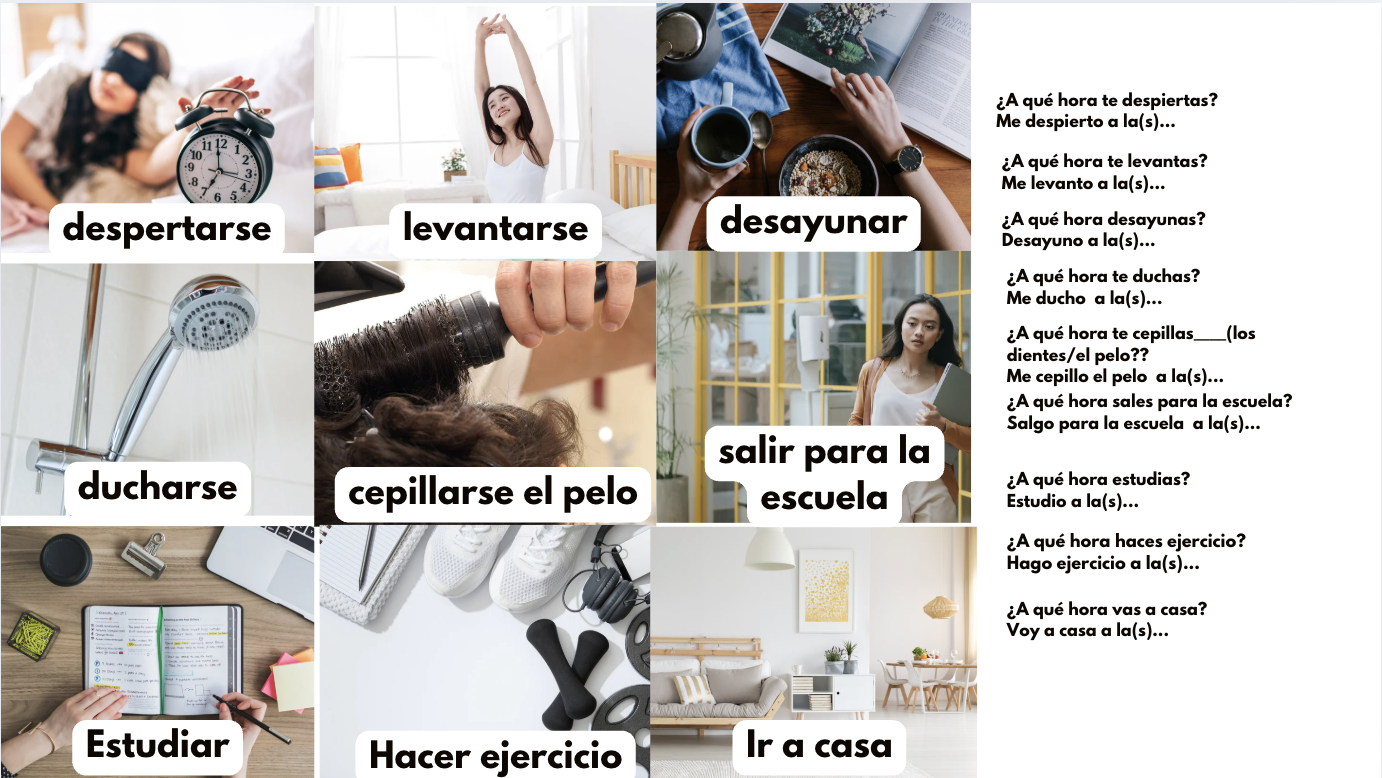 Presentational: Write a paragraph about your daily routine (include reflexive verbs)