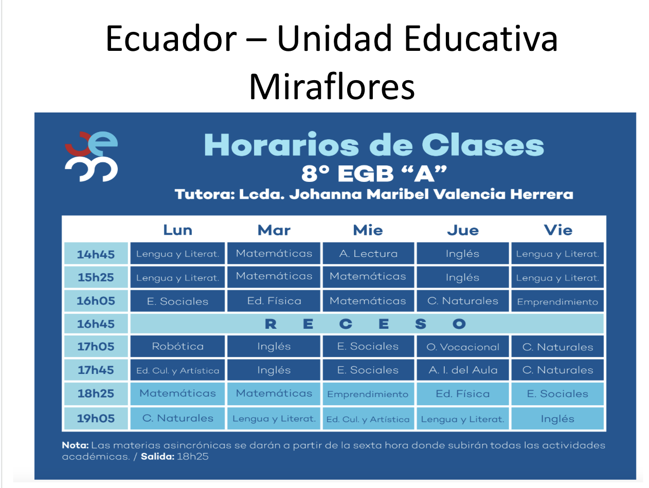 Interpretive: Read about a student’s school schedule in Ecuador
