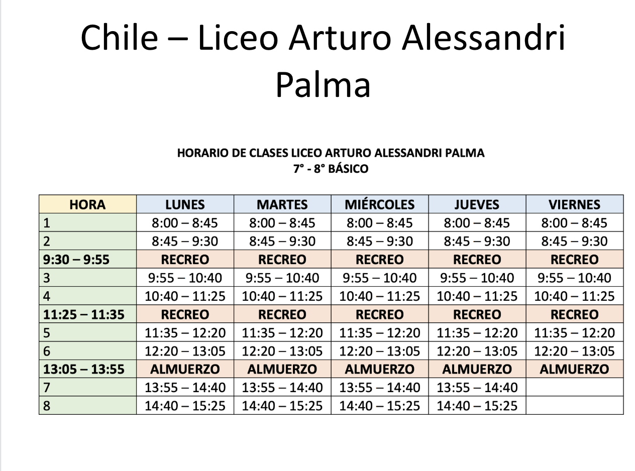 Reading: Sample school schedules in Mexico