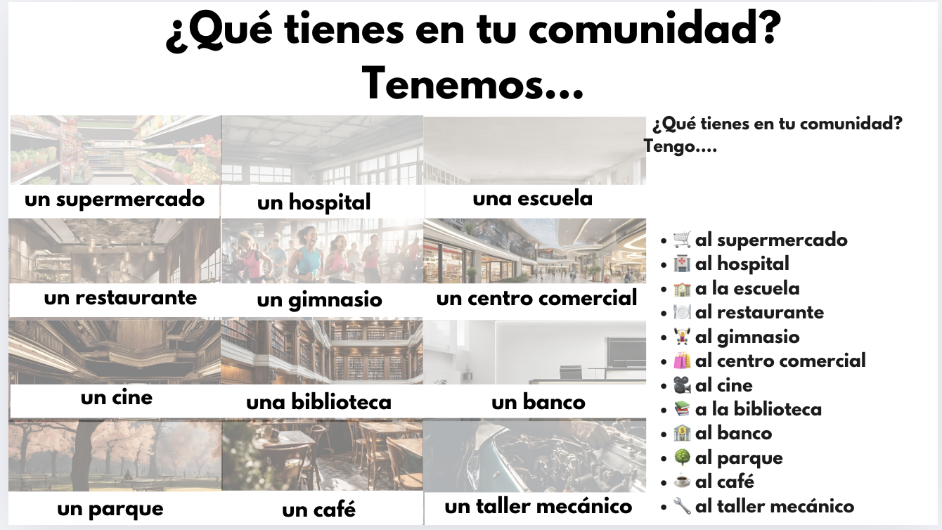 Vocabulary: Places in the community (use visuals or slides)