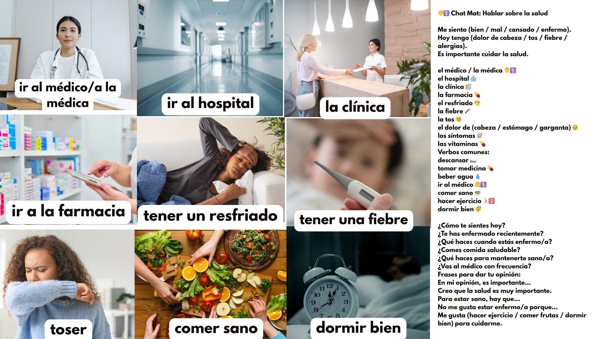 Looking for a way to facilitate talking about health for learners of Spanish? Check out these chat mats.