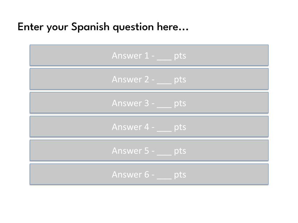 - Read the question aloud in Spanish. The first student to buzz in (or raise their hand) answers. If they get the top answer or a high-ranking one, they can choose to “play” or “pass.”