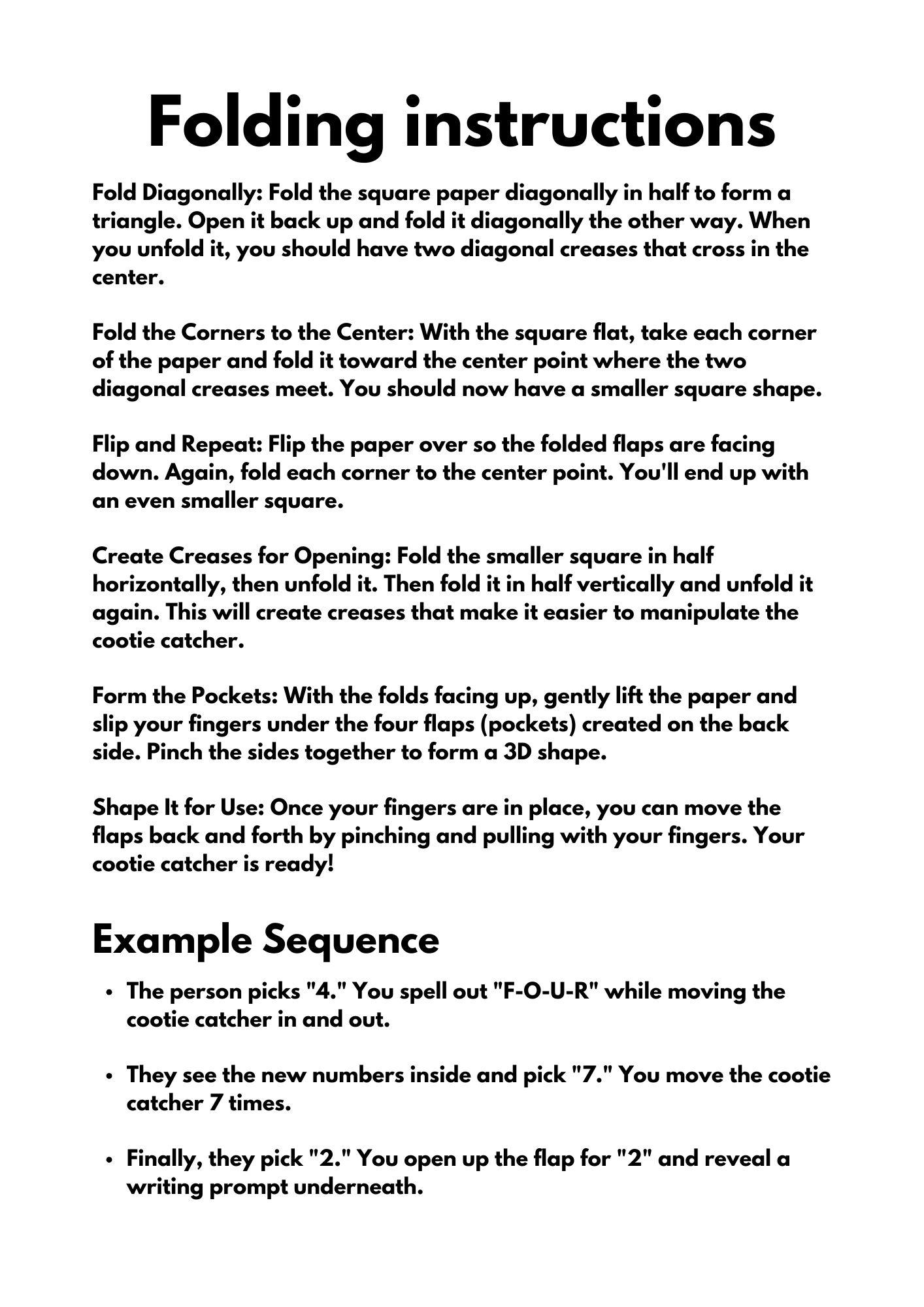 • Do group activities like fortune-teller skits or cootie catcher predictions